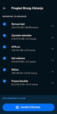 Pored sveobuhvatnog čišćenja, ovaj alat vam pomaže da locirate najveće datoteke, medijske zapise i druge neželjene elemente koji drastično smanjuju dostupnu memoriju. Sa preciznošću otkrijte skrivene "teškaše" i odlučite šta želite da zadržite, a šta da trajno uklonite. A za one koji žele potpunu optimizaciju jednim dodirom, ova aplikacija koristi dozvolu "Pristupačnost". Ova funkcija je osmišljena da pomogne svim korisnicima, uključujući i osobe sa invaliditetom, da momentalno zaustave sve pozadinske aplikacije, oslobađajući RAM memoriju i produžavajući vek trajanja baterije bez napora.