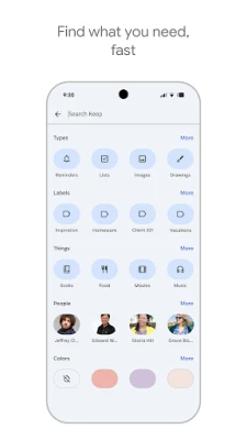 Организовање ваших идеја никада није било лакше. Доделите различите боје белешкама и означите их прилагођеним етикетама како бисте их брзо категорисали и одржали прегледност. Када вам затреба одређена информација, ефикасна претрага у Google Keep-у ће вас тренутно довести до жељеног садржаја. Планирате изненађење или заједнички пројекат? Делите своје белешке са пријатељима и породицом, омогућавајући сарадњу у реалном времену и заједничко уређивање. Најважније белешке можете и "закачити" на почетни екран свог уређаја помоћу виџета, стварајући тако брзе пречице директно на плочицама Wear OS-а.