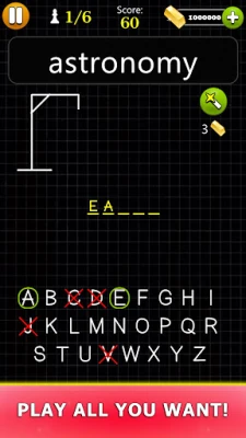 Zaronite u svet reči i izazova uz Hangman - Word Game, ultimativnu igru pogađanja koja će testirati vaš um i obogatiti vaš rečnik! Krenite u uzbudljivu avanturu gde je svaki potez bitan. Vaš cilj je jasan: otkrijte skrivenu reč slovo po slovo. Ali budite oprezni – svaki pogrešan izbor vas približava konačnom ishodu, dok vas ispravne pretpostavke vode ka trijumfu. Što manje grešaka napravite, to će vaš rezultat biti impresivniji, podstičući vas da neprestano unapređujete svoje znanje i intuiciju.