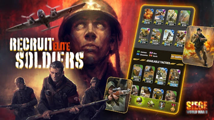 Jeste li rođeni za komandovanje, sa strateškim umom koji može preokrenuti tok sukoba? SIEGE: World War 2 vas postavlja u srce najintenzivnijih vojnih kampanja Drugog svetskog rata, gde se vaše sposobnosti odlučivanja stavljaju na ultimativni test. Suočite se sa stvarnim igračima u uzbudljivim PvP dvobojima, gradeći nezaustavljivi špil karata za opsadu i slamanje protivnika. Sakupljajte, otključavajte i unapređujte raznolike trupe i taktičke karte, stvarajući savršenu vojnu formaciju za dominaciju na ratištu. Vaš put do vojne slave počinje ovde, na bojnim poljima gde se istorija piše iznova.