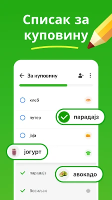 Pametna lista za kupovinu olakšava i ubrzava vaše odlaske u prodavnicu. Organizujte namirnice mudro, uštedite vreme i poboljšajte celokupno iskustvo kupovine. Sve što vam treba za efikasnu kupovinu.